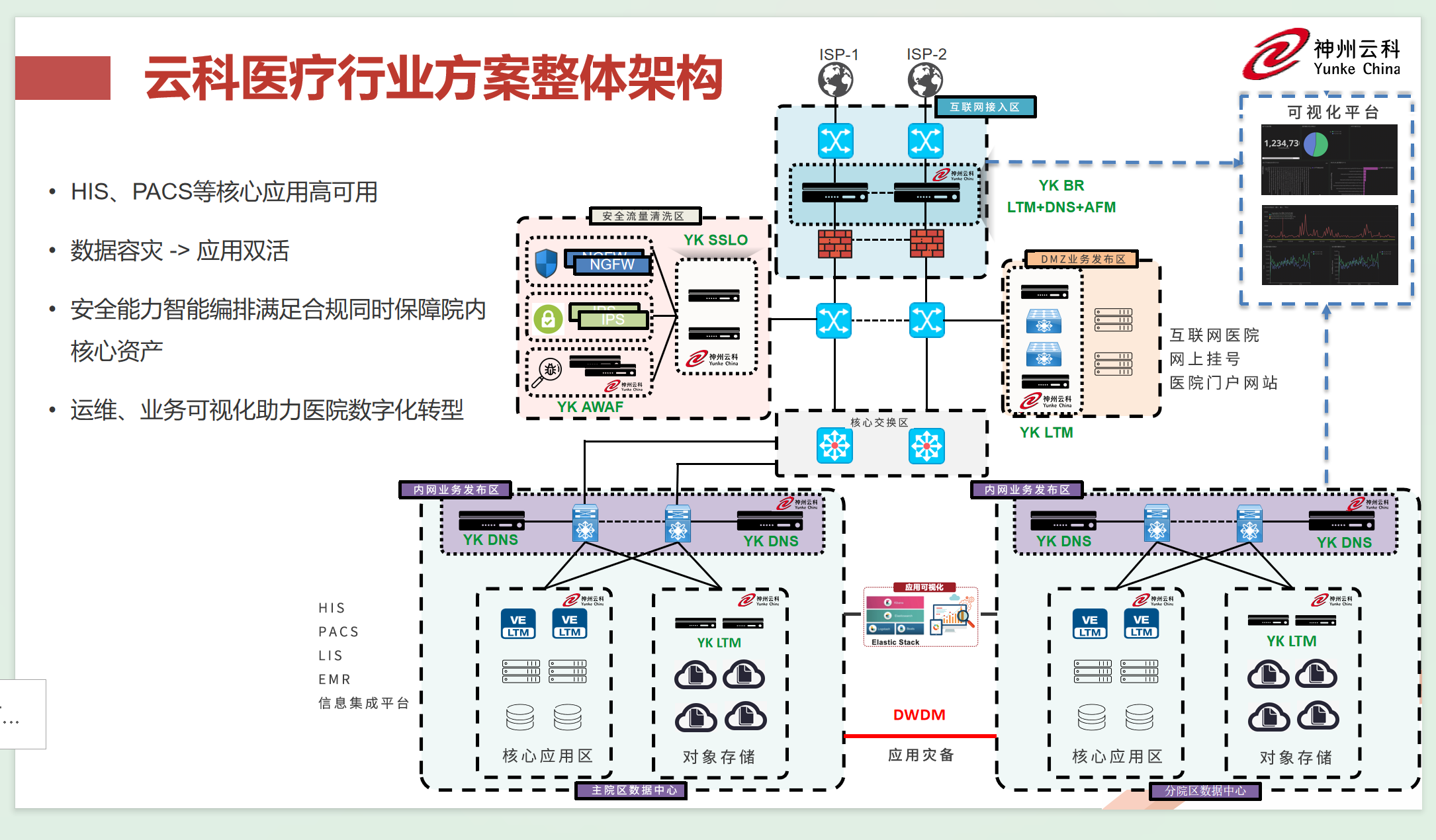 在电子病历4升5,以及互联互通五乙的评审要求中,均提出了核心系统RTO/RPO提出了小于15分钟的要求。云闪付应用双活解决方案,拥有国内最多的双活实施案例,帮助医院用户轻松实现HIS、PACS、EMR等核心应用在单院区出现故障时的快速转院区访问,保障了医院应用系统的高可用性和高可靠性。